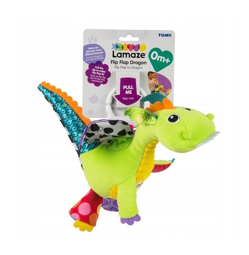Zawieszka Smok Flip Flap będzie wspaniałym towarzyszem pierwszych przygód dziecka - jego skrzydła trzepoczą, nóżki szeleszczą, a brzuszek wykonany jest z mięciutkiego pluszu.