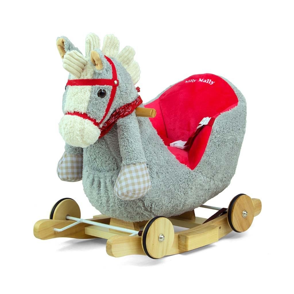 Měkoučký houpací koník Polly byl navržen pro nejmladší děti, pro které jsou tradiční houpací koníci ještě příliš velcí. Pohodlné sedadlo ve tvaru křesla a nastavitelné bezpečnostní popruhy poskytují pohodlí a bezpečnost během bezstarostného houpání vašeho dítěte. Opěrky pro nohy na lištách a rukojeti ještě více pomáhají udržet rovnováhu. Překlopením jednoduchého mechanismu na lištách vysunete kolečka, čímž ve vteřině změníte houpací hračku v jezdícího koníka. Houpací lišty lze jednoduše odšroubovat. Po stisknutí ouška koník zahraje veselou melodii.