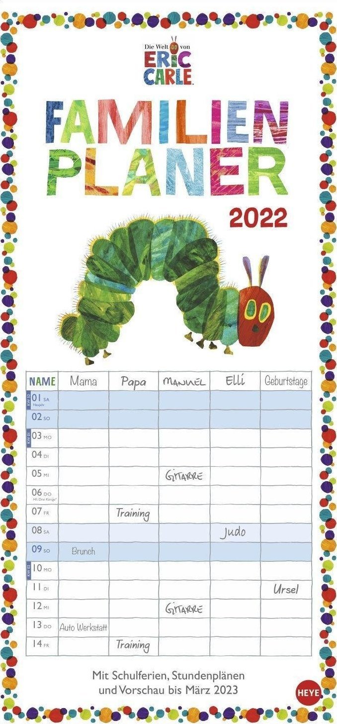 Die kleine Raupe Nimmersatt Familienplaner Kalender 2022 (německy)