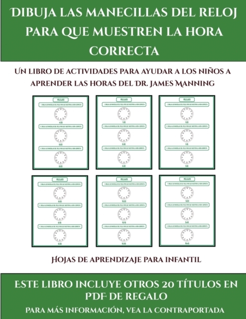 Hojas de aprendizaje para infantil (Dibuja las manecillas del reloj para que muestren la hora correcta) (španělsky)