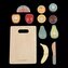 - Součástí je dřevěný nožík a krájecí prkénko.