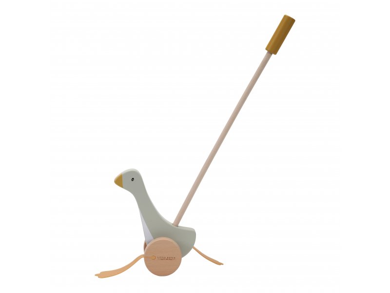 Paci, paci paci! Malá husa se už blíží k vám. Tato klasická hračka s vámi ráda objevuje nová místa a vydává se na dobrodružství. Zatlačte Huskies dopředu nebo ji stáhněte zpět a sledujte jaké zábavné pohyby vytváří svými nožkami. Húska na špejli povzbudí vašeho prcka k chůzi a pomůže rozvíjet jeho motorické schopnosti. Vyrobeno z odolného dřeva s gumovými nožičkami.