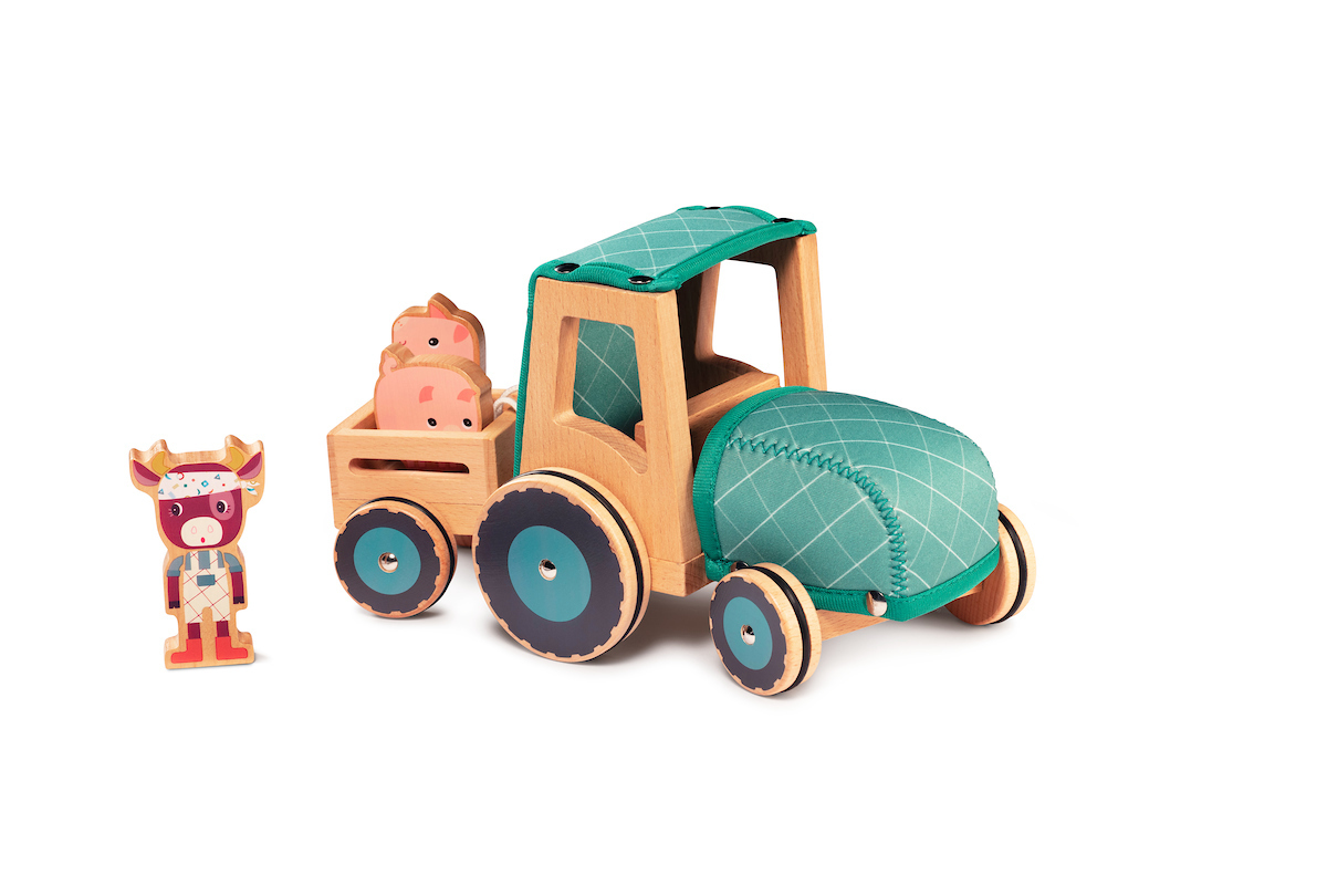 Krásný dřevěný traktor je ideální dárek pro kluky od 2 let. Farmářka Rosalie hospodaří na farmě a je stále v jednom kole. Prasátka šťastně rostou a kravička je přepravuje v přívěsu za traktorem. Jedou s ní na pole, kde se proběhnou. S tímto traktorem si děti mohou vymýšlet ty nejbláznivější dobrodružství.