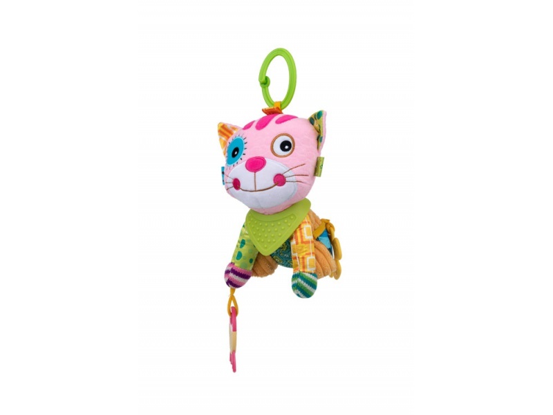 Pomocí klipu umístěnému na hlavičce se hračka může zavěsit na kočárek, postýlku nebo autosedačku.