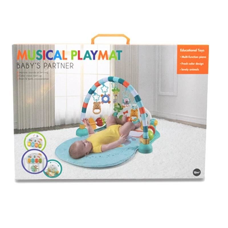 - Akcesoria: mata posiada 5 ślicznych zwierzątek, kulki plastikowe czerwono-zielone, gdzie jedna zawiera grzechotkę, a druga kurczaczka. Wielofunkcyjne pianinko, które stymuluje słuch rozwijając zmysł muzyki. Dziecko może w nie uderzać nogami podczas leżakowania.
