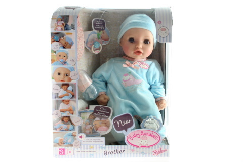 Baby Annabell chlapeček je skoro jako opravdové miminko, má tolik funkcí. Reaguje na doteky, umí ronit opravdové slzy a má rád svou lahvičku. Když ho něžně pohoupeš na rukou nebo v kolébce, pomalu zavře očka, usne a bude spokojeně oddychovat. Když se probudí, bude mít hlad. Když mu dáš lahvičku, bude při pití hýbat pusinkou a otevírat a zavírat očka. Jako opravdové miminko! Když Baby Annabell chlapečka pohladíš po tváři, bude vesele žvatlat. Když náhodou začne plakat a ronit opravdové slzy, za chviličku ho uklidníš dudlíkem, který je součástí balení. A Baby Annabell chlapeček se naučil i něco nového: odteď už umí i čůrat!