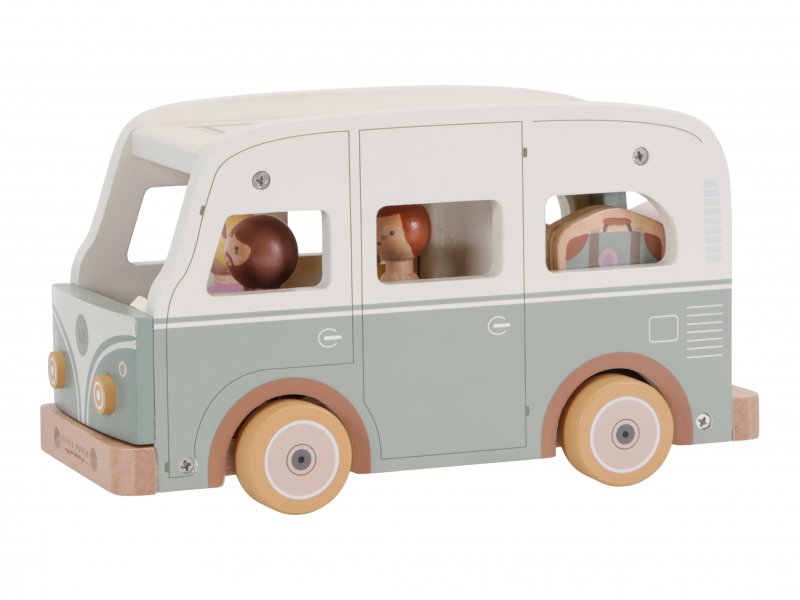 Karavan v kvalitním dřevěném provedení má odnímatelnou střechu, aby bylo možné dovnitř posadit celou rodinu, kufr a zásoby jídla na víkend. Surf se připevní na střechu a víkend u moře může začít!Obsah balení: karavan, 4 figurky, kufr, taška s jídlem a surf.Rozměry: 22,5 x 10,5 x 12,5 cmVhodné pro...
