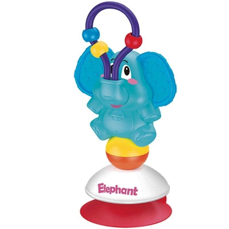 Grzechotka niebieski, plastikowy słoń z przyssawką, który może towarzyszyć dziecku w domu, podczas kąpieli, spaceru i w podróży. Dzięki gumowej przyssawce, można z łatwością przymocować ją do płaskiej, gładkiej powierzchni blatu stołu, podłogi lub krzesełka do karmienia. Na trąbie Słonik ma nawleczone kolorowe koraliki, które umożliwią maluchowi doskonałą zabawę, jednocześnie zapewniając stymulację funkcji rozwojowo- poznawczych. To idealna zabawka dla najmniejszych pociech.