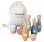 Sada nabízí vše potřebné k zábavnému bowlingovému zážitku - dřevěné kuželky a míček jsou navrženy tak, aby podpořily motorické schopnosti i přesnost. Textilní sáček pak oceníte pro snadné přenášení a skladování celé hry, což umožňuje vzít ji kamkoliv s sebou.