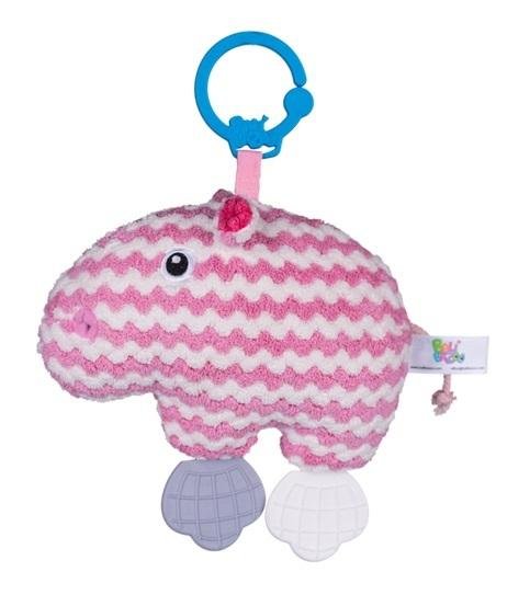 Stylowy Hipcio to niezastąpiony kompan do zabawy! Wykonany został z materiału o fakturowanej powierzchni, który stymuluje zmysł dotyku dziecka, rozwijając jego zdolności poznawcze. Zwierzaka zdobią gryzaczki, a w jego brzuszku kryje się dzwoneczek, dzięki czemu Hipcio wesoło dzwoni przy potrząsaniu. Praktyczny uchwyt, pozwala przymocować zawieszkę w wybranym miejscu, aby wszędzie mogła towarzyszyć maluchowi.