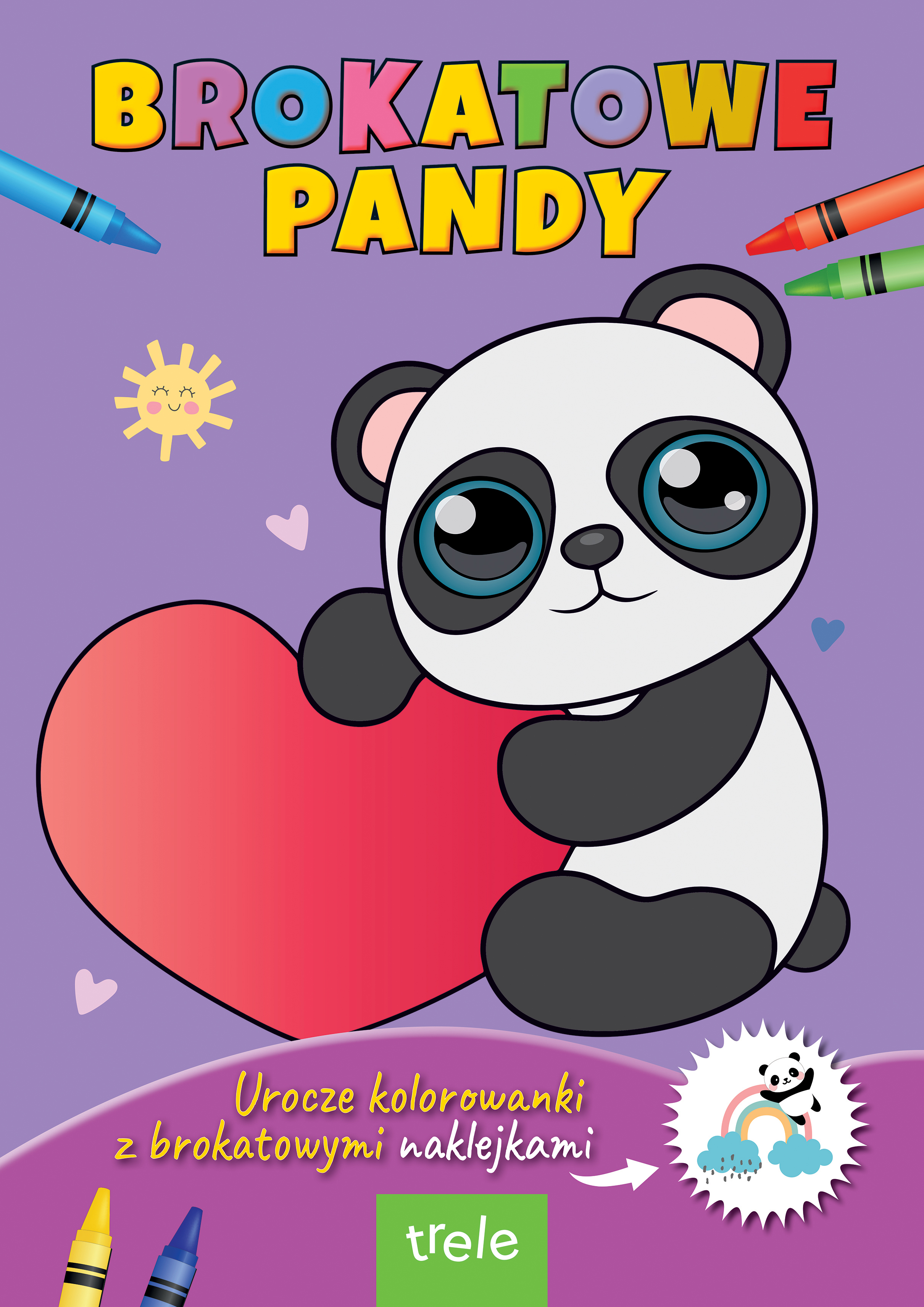 Urocze brokatowe kolorowanki z naklejkami. Brokatowe pandy. Urocze brokatowe kolorowanki z naklejkami. (polsky)