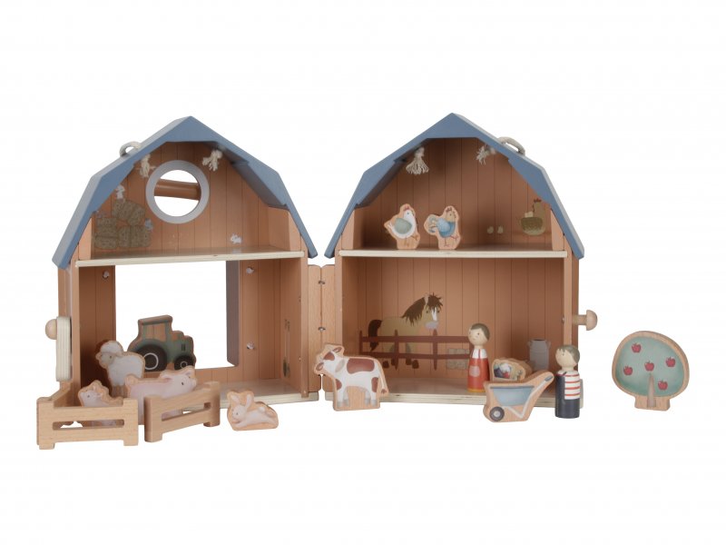 Domeček je navržen jako stylová stodola se dvěma patry, která poskytují dostatek prostoru pro zvířátka z farmy i jejich ošetřovatele. Potisk domečku a detailní doplňky vytvářejí živý obraz farmářského života, což posiluje dětskou představivost a podporuje kreativní hru. Domeček je vybaven praktickou rukojetí, díky které je snadné jej přenášet kamkoliv, a lze ho pohodlně otevírat a zavírat pro snadný přístup a další zábavu.
