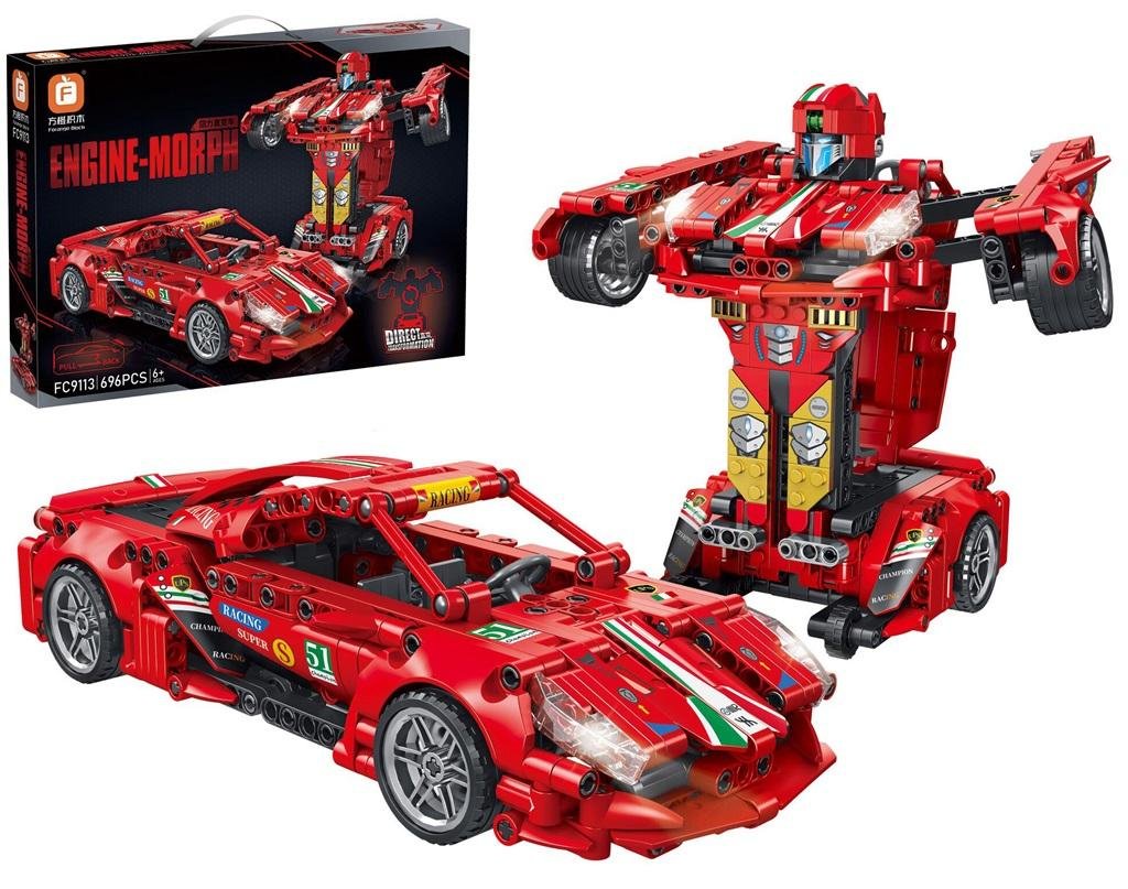 Klocki dla dzieci +6 lat. W zestawie 696 klocków z których można stworzyć auto zmieniające się w robota. číst celé