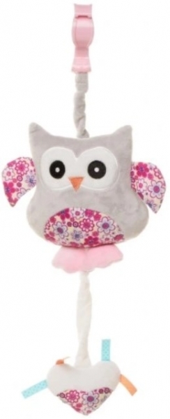 Závěsná plyšová hračka s melodií, Sova, růžová