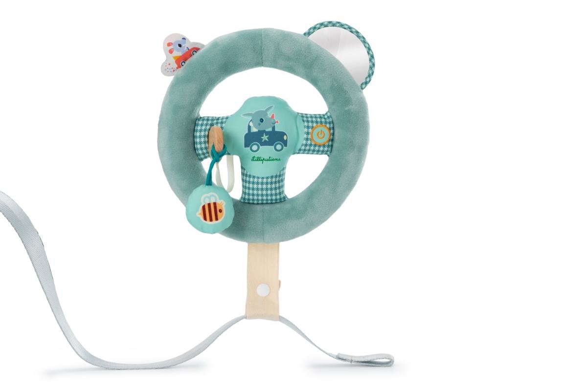 Zapněte si pás, usedněte za volant a nastartujte auto - je čas na dobrodružství! Nezapomeňte se podívat do zpětného zrcátka! Tento měkoučký textilní volant se připevňuje k bezpečnostnímu pásu auta a skvěle zabaví děti během cestování autem. Volant umožňuje dětem od 18 měsíců napodobovat činnost dospělého řidiče a zároveň stimuluje dětskou představivost.