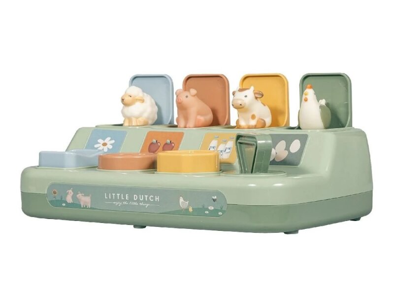 Tento pultík se zvířátky je skvělým způsobem, jak povzbudit zvědavost vašeho malého objevitele. Stačí stisknout tlačítko a objeví se roztomilé zvuky ovečky, prasátka, kravičky nebo kuřátka. Díky tomu se dítě učí asociovat tvary a barvy se zvířátky a zároveň rozvíjí jemnou motoriku.