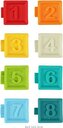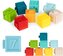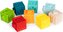 Měkké barevné kostky stejné velikosti, s různým povrchem, zvířátky a čísly jsou určeny pro nejmenší děti.