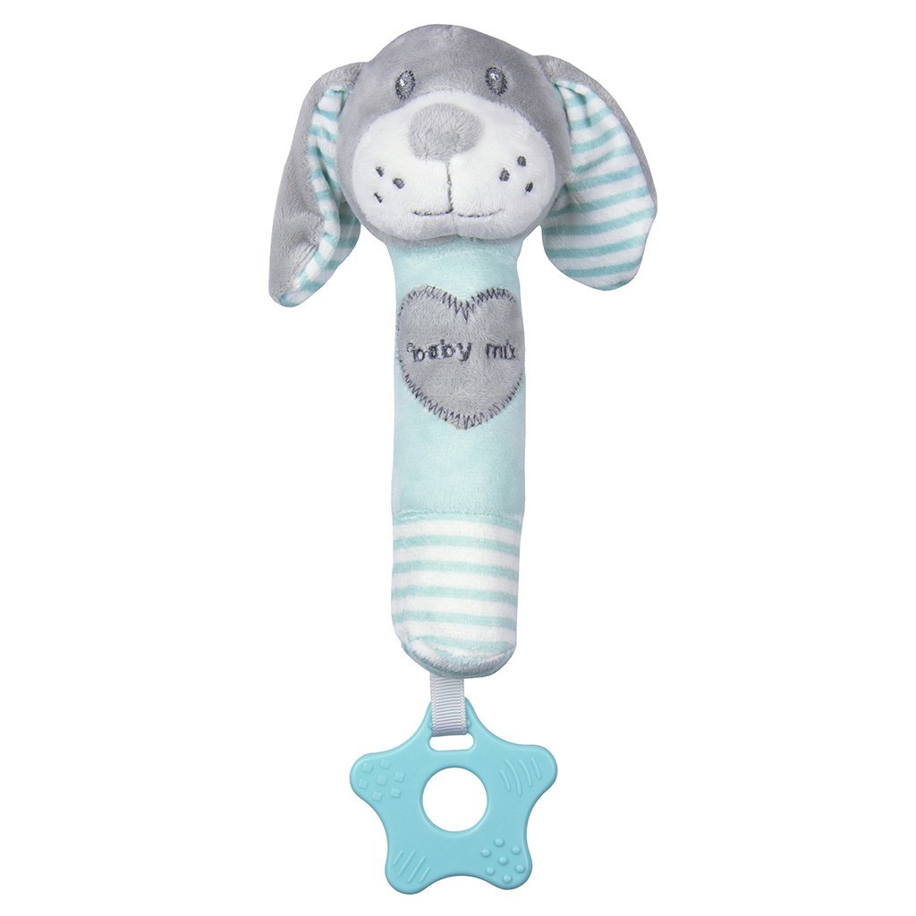 Dětská pískací plyšová hračka s kousátkem Baby Mix pes mátový