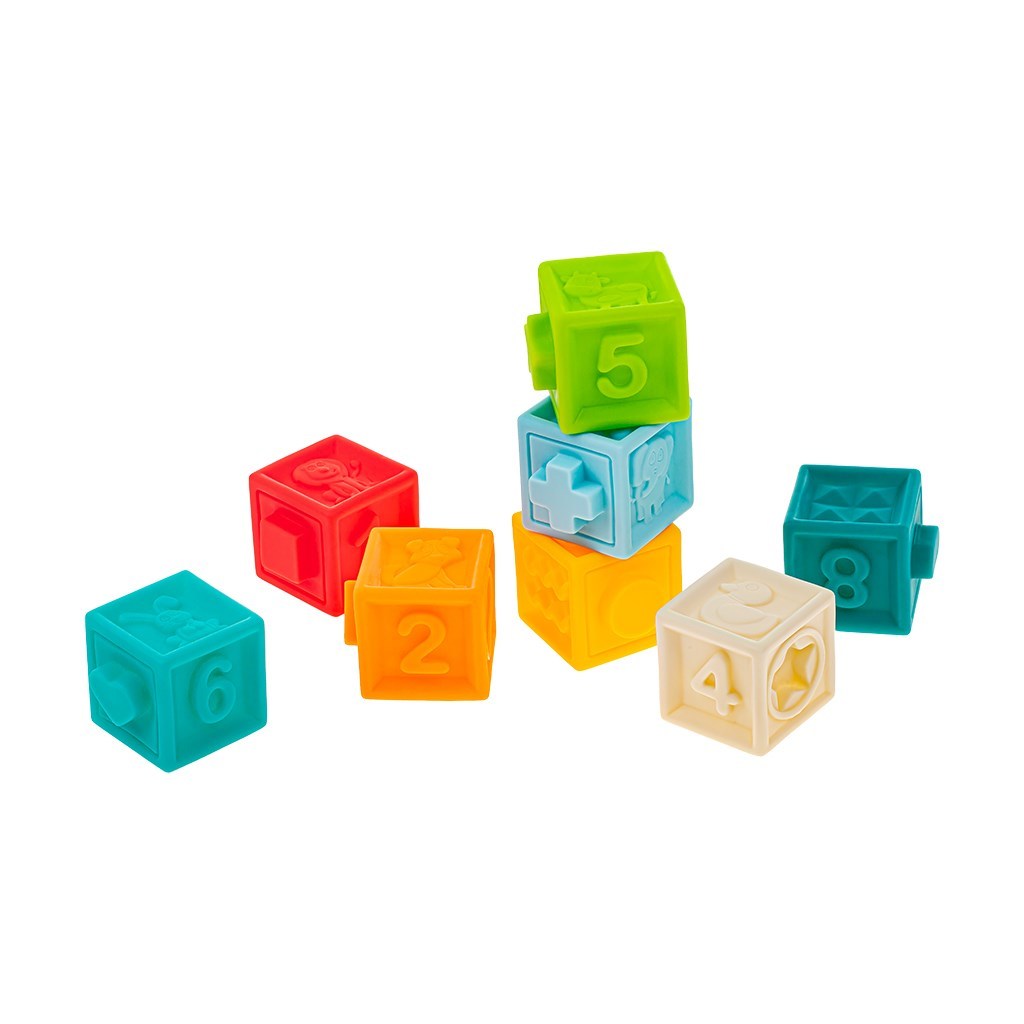 Tato sada je ideální pro nejmenší děti od 6 měsíců, protože hračky jsou vyrobeny z bezpečného gumového materiálu, který je příjemný na dotek a vhodný i do koupele. Každý tvar má jiný povrch a při stlačení vydává jemné pískání, což pomáhá stimulovat smysly i představivost dítěte. Hračky jsou navrženy tak, aby podporovaly rozvoj jemné motoriky a zároveň učily děti rozlišovat různé barvy a tvary hravou formou.
