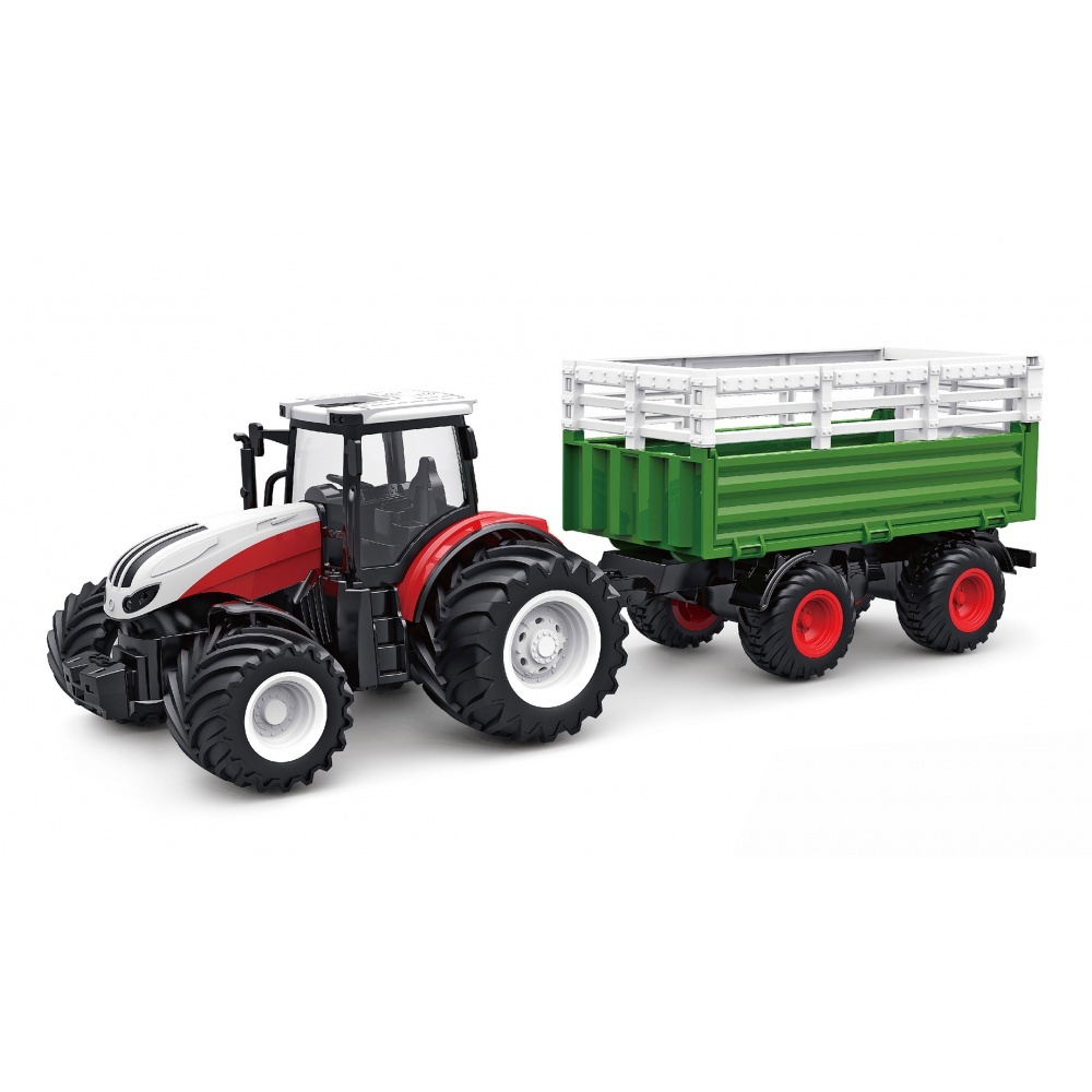 Technické údaje: Měřítko: 1:24, pohon zadní nápravyCelková délka: 400 mm (s výklopným přívěsem) Celková výška: 220 mm (s max. polohou sklápění přívěsu)Doba jízdy cca 35 minut, doba nabíjení cca 120 minut, dosah ovládání cca 20 metrůHmotnost: 660 gObsah balení:Sestavený modelDálkové ovládáníAkumulátor do modelu Li-ion 3,7V/500mAhModel kravičkyNávod k obsluzeTraktor je vhodný pro děti od 6-ti let. Pro zprovoznění budete potřebovat 2x AAA baterii do vysílače.Pro náhradní díly navštivte naší sekci náhradních dílů, nebo zašlete poptávku e-mailem.