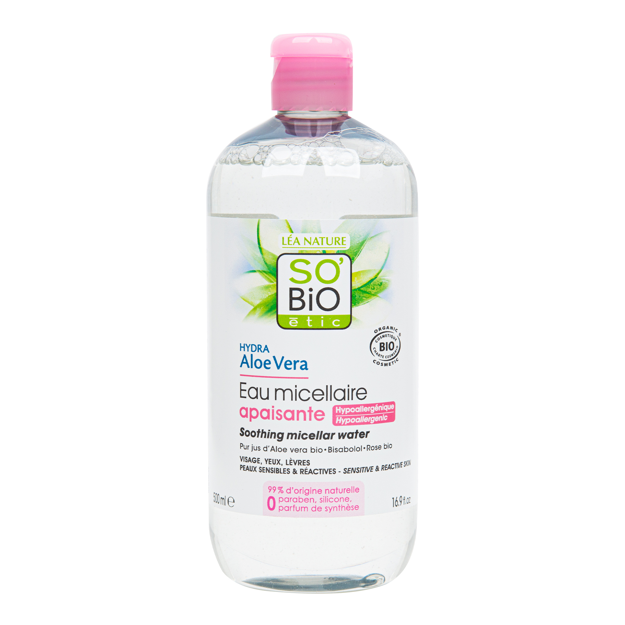 Micelární voda SO’BiO étic s obsahem hydratační a zklidňující šťávy z aloe vera jemně, ale důkladně odstraňuje nečistoty a make-up. Je vhodná pro všechny typy pleti, zvláště ale pro ty, které vyžadují extra péči, jako je pleť citlivá a reaktivní. Díky jemné parfemaci přírodními éterickými oleji je každé použití příjemným rituálem, který nevtíravě osvěží a uklidní pokožku.