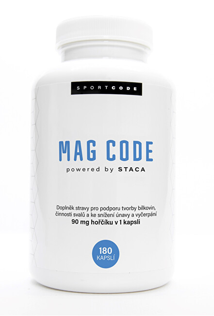 Mag Code je prémiový doplněk stravy obsahující hořčík ve snadno rozpustných a pro organismus ideálně využitelných formách - bisglycinátu a glycerofosfátu. Hořčík podporuje normální funkci svalů, přispívá k normálnímu energetickému metabolismu a ke snížení míry únavy a vyčerpání. Podporuje přirozenou tvorbu bílkovin a pomáhá udržovat normální stav kostí a zubů.