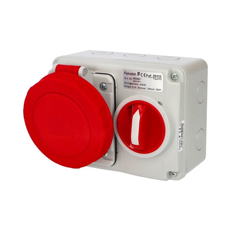 Průmyslové zásuvky SpeedPRO splňující požadavky norem IEC 60309. Jedná se o zásuvky vybavené speciálním vačkovým spínačem 0-1 s funkcí blokády - tzn. že při nepřipojené vidlici nelze otočit spínačem do zapnuté polohy. Zásuvky jsou osazené v plastové krabici, která je určena pro montáž na omítku (na povrch). Pro montáž na hořlavé podklady je nutné použít nehořlavou podložku.