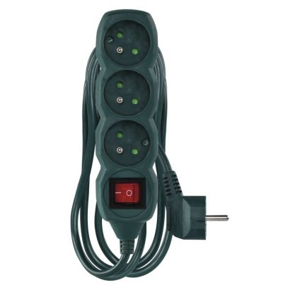 Prodlužovací kabel EMOS P1313RZ s vypínačem, 3 zásuvky, 3m, zelený