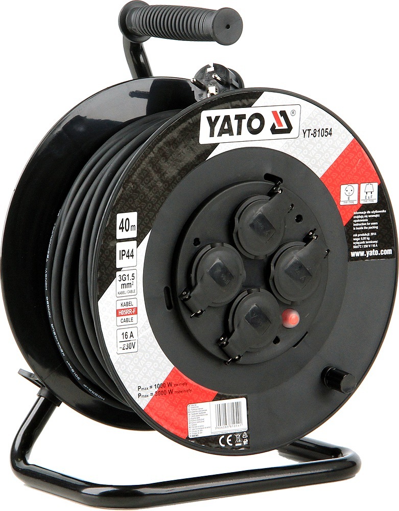 Prodlužovací buben 4-zásuvkový, vyznačující se vysokou kvalitou a 40 m prodlužovacím kabelem.