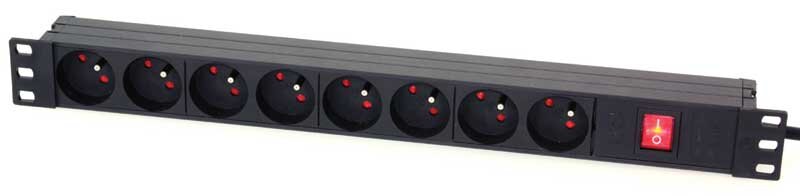 Zásuvková lišta určená pro 19" RACK * 8x zásuvka na 230V/50Hz/16A s dětskou ochranou * 1,8m prodlužovačka. Podsvícený vypínač. číst celé