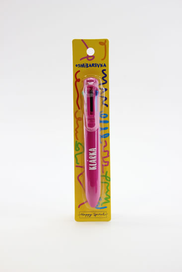 Osmibarevná propiska se jménem či originálním nápisem nesmí chybět v žádném penálu! Propiska píše těmito barvami: černá, hnědá, růžová, fialová, červená, oranžová, zelená a modrá. číst celé