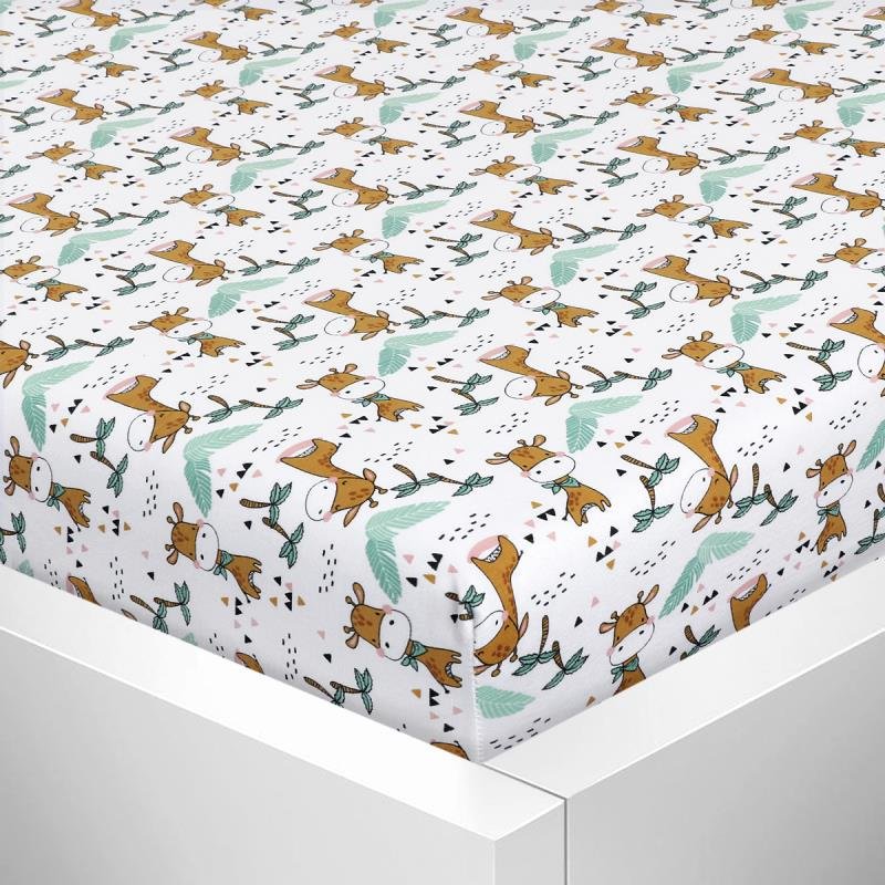 Prostěradlo jersey s elastanem - žirafy - 90x200 cm