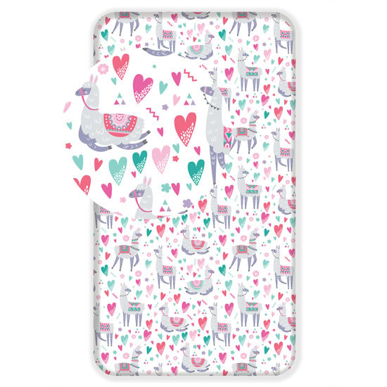 Lama se dostala i na motiv prostěradla. Skvěle doplní povlečení se stejným motivem, které ale není součástí a je nutné ho dokoupit. Prostěradlo je napínací a snadno se upíná pomocí gumiček po jeho obvodu. Materiál je kvalitní, pružný, barvy jsou jasné, hezké, neztrácí na intenzitě ani po vyprání. Prostěradlo sedí na klasickou postel jednolůžkovou o rozměrech 90x200 cm. Doporučuji i jako dárek pro každou mladou slečnu.