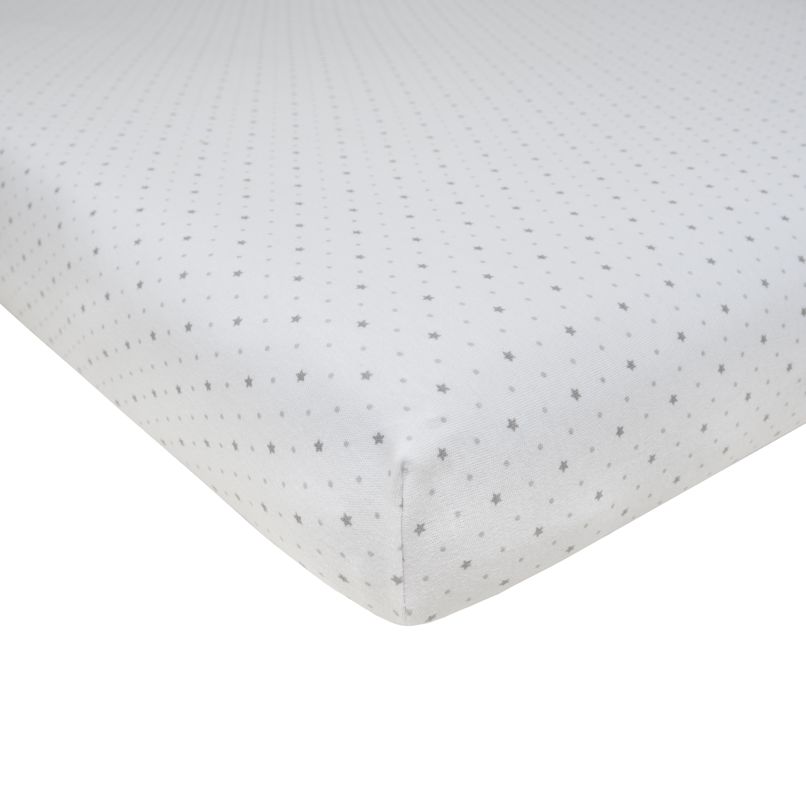 Jemné dětské napínací prostěradlo do postýlky ze 100% bavlny Jersey. Prostěradlo do postýlky je napínací, po navlečení na matraci je krásně vypnuté v celé ploše i díky prošitým rohům. Na spodní straně prostěradla je kvalitní pružná guma. Elegantní design s jemným potiskem z kolekce Hvězdička.