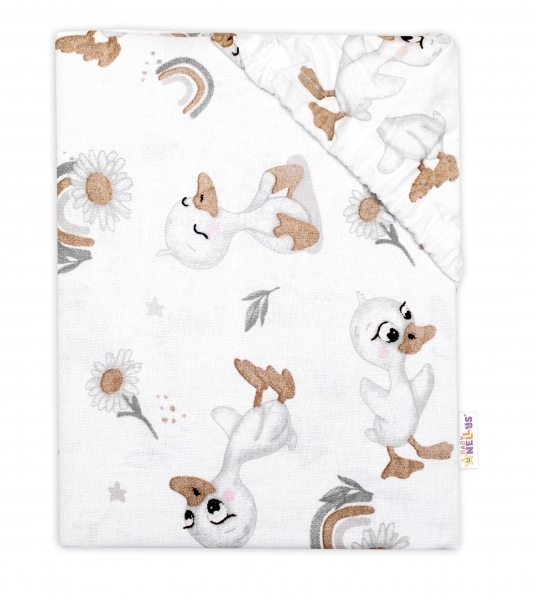 Bavlněné prostěradlo do postýlky, Kačátko, bílá/béžová, 140x70 cm; 140x70
