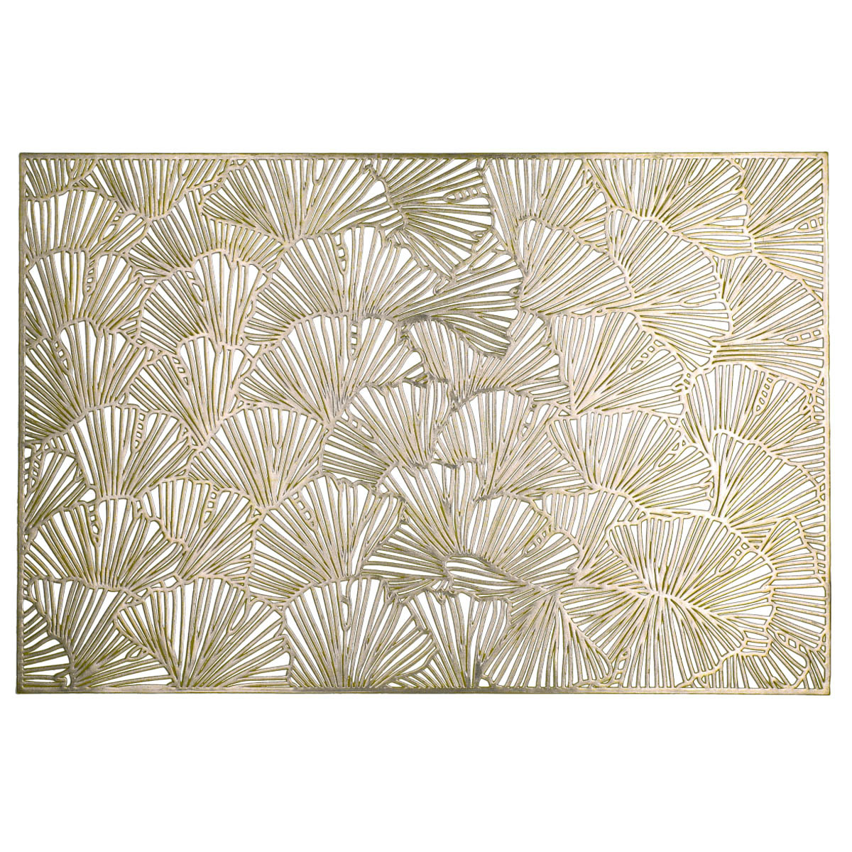 Jídelní podložku DRAGOSTE zdobí zlatá barva s květinovým motivem připomínajícím listy jinanu dvoulaločného. Díky svému ažurovému tvaru bude skvěle vypadat na každém stole. Prostírání bylo navrženo v obdélníkovém tvaru. Rozměry výrobku jsou 30 x 45 cm.