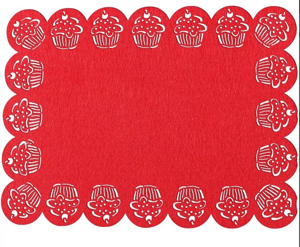Kvalitní plsťové/filcové prostírání v moderním "muffíns" designu. Prostírání je nabízeno ve velikosti 30x45 cm. Motiv je v prostírání vykrojen.