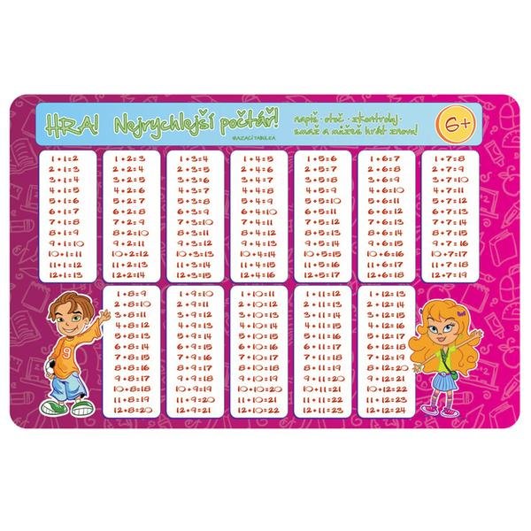 Dětské plastové prostírání se používá pro prostření stolu, zároveň chrání proti znečištění, zašpinění nebo poškození stolu. Prostírání s motivem "počítání"- tímto zábavným způsobem se naučí základní počty levou zadní. Na toto veselé, růžové prostírání s klukem a holkou se totiž dá úplně v pohodě psát. Děti prostě jen zapíší výsledek svých počtů a otočí. Děti jsou od přírody soutěživé, s tímto prostíráním si mohou dát početní závody a to je bude zaručeně bavit. Po kontrole výsledků jednoduše vše smažete. Rozměry - 43,5 x 28,5 cm.