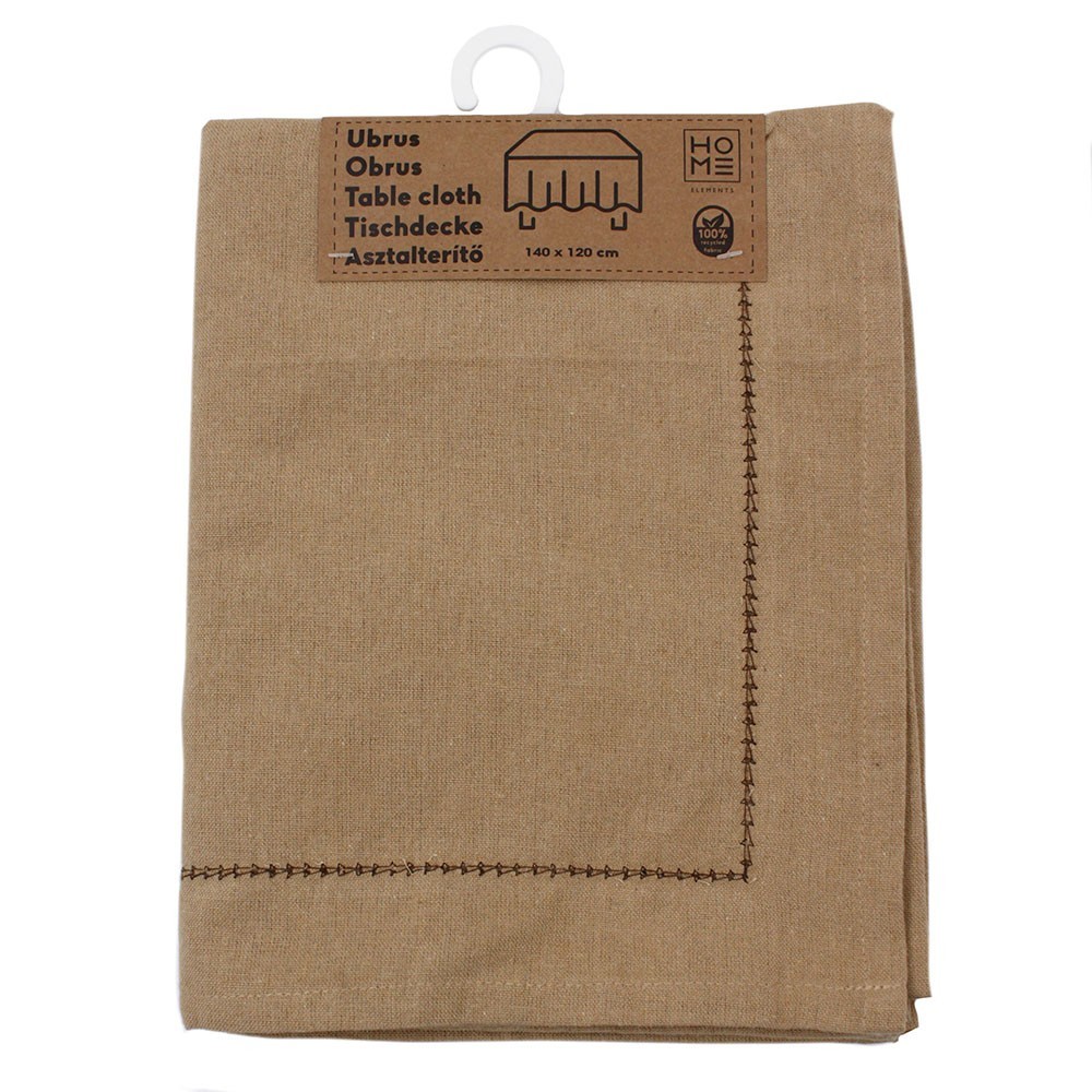 HOME ELEMENTS Ubrus z recyklované bavlny, 140x120 cm, béžový, s prošitým lemováním