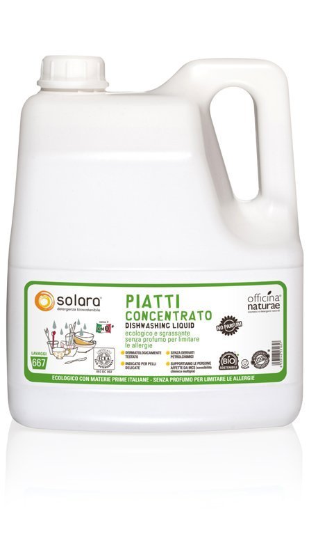 Gel na ruční mytí nádobí bez parfemace je díky vysoké koncentraci velice úsporný. 4litrová lahev vystačí až na 667 mytí. Díky účinným mycím složkám z lokální italské řepky si hravě poradí i s mastnou špínou. Jeho pH je přitom neutrální a i citlivou pokožku rukou zvláční přídavek extraktu z olivového oleje. Gel se pyšní certifikací ICEA Eco Detergent a co víc? Jeho slušivý obal je vyrobený z plně recyklovatelného bioplastu z šetrně pěstované cukrové třtiny.