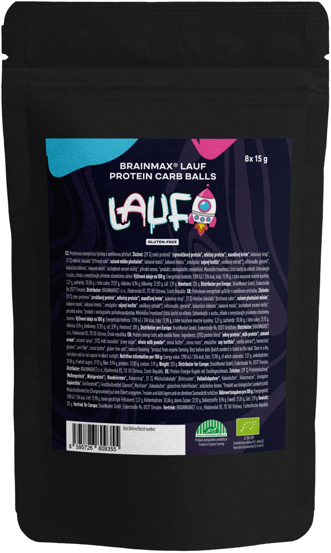 BrainMax Lauf Protein Carb Balls, Proteinové-sacharidové kuličky, BIO, 8 ks