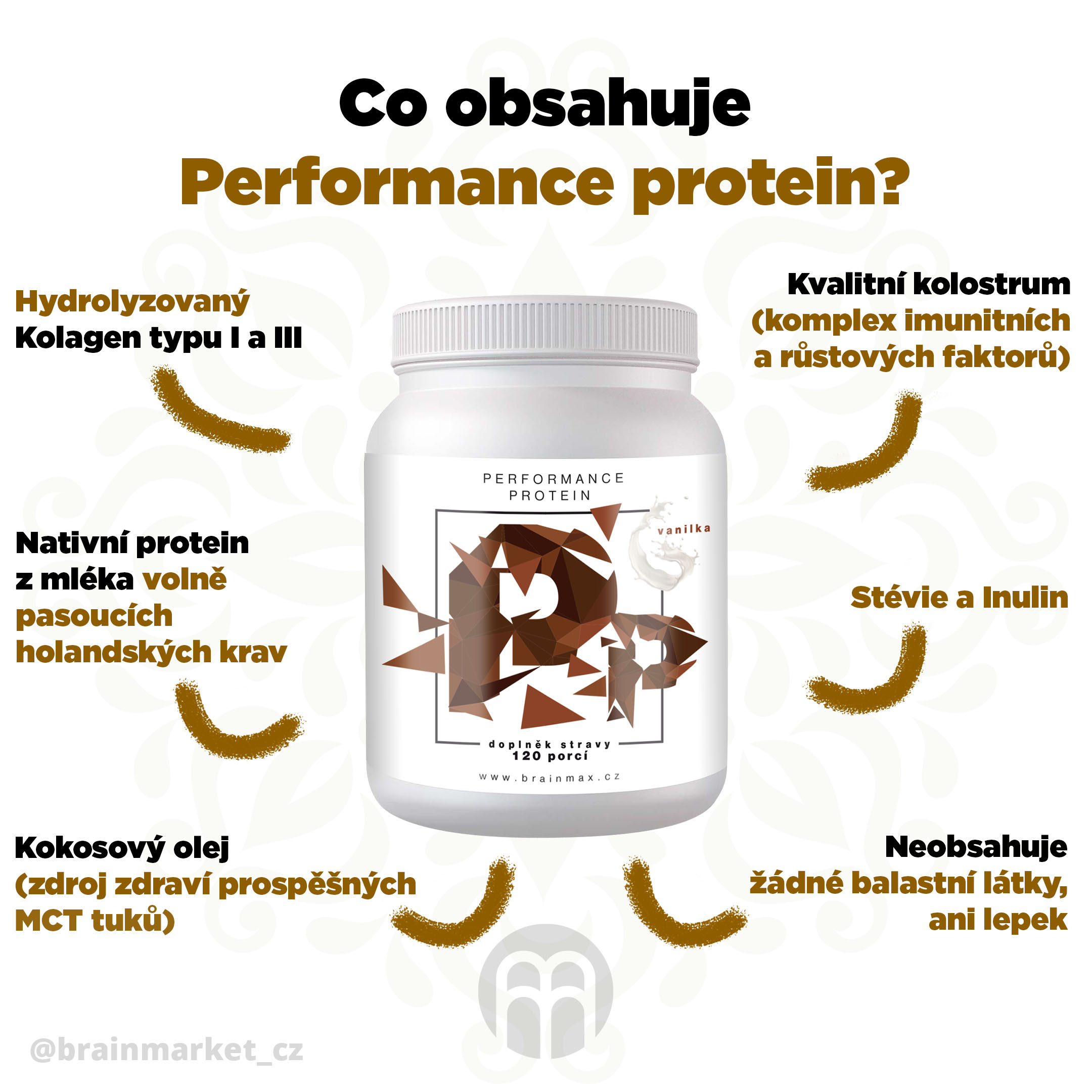 Performance Protein není jenom další protein. Můžete si být jisti, že kombinace látek v jednom produktu v takové kvalitě neexistuje. Celý produkt jsme navrhovali nejen pro doplnění kvalitního zdroje bílkovin, ale také jako nástroj pro regeneraci pojivových tkání, obnovení střevní bariéry skrze kterou se do našeho organismu mohou uvolňovat toxiny a také pro podporu imunity.
