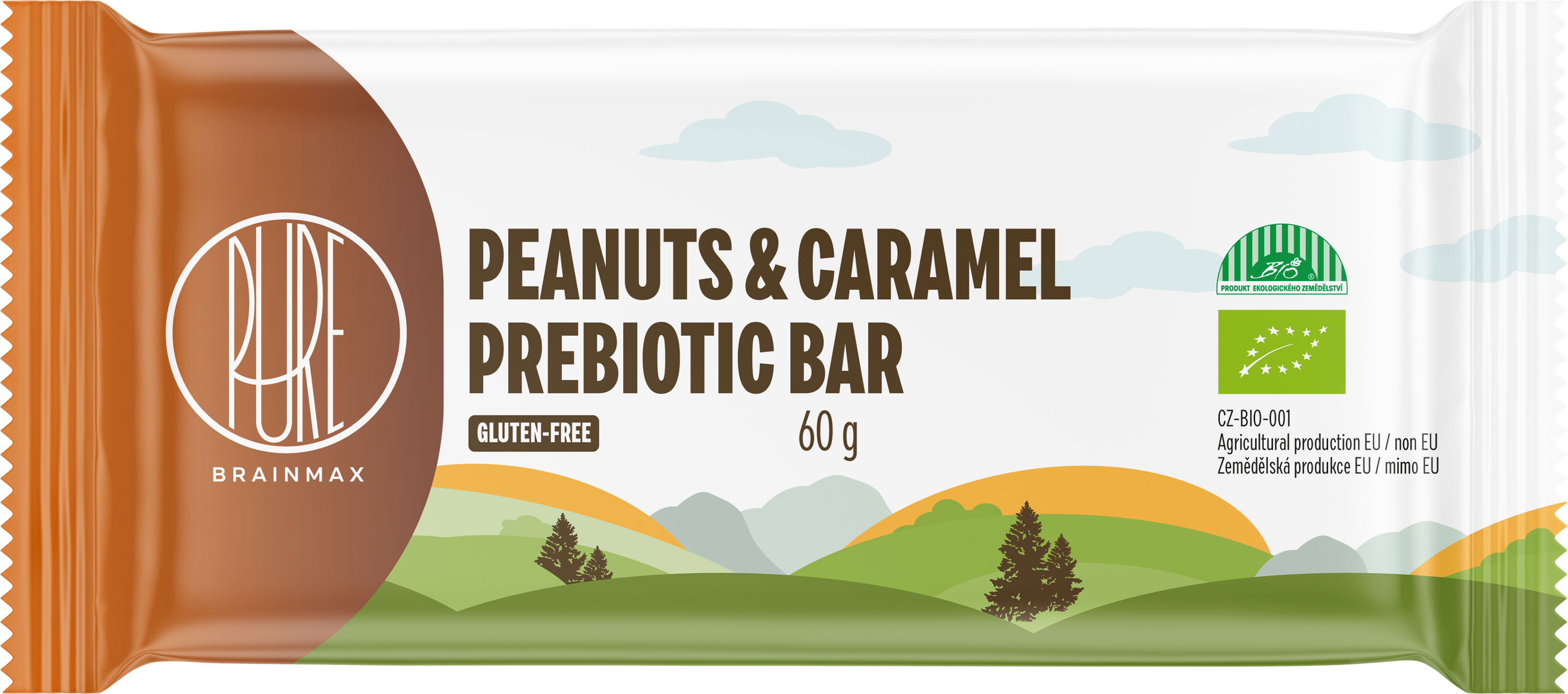 BrainMax Pure Peanuts & Caramel Prebiotic Bar, prebiotická tyčinka, arašídy a karamel, BIO, 60 g