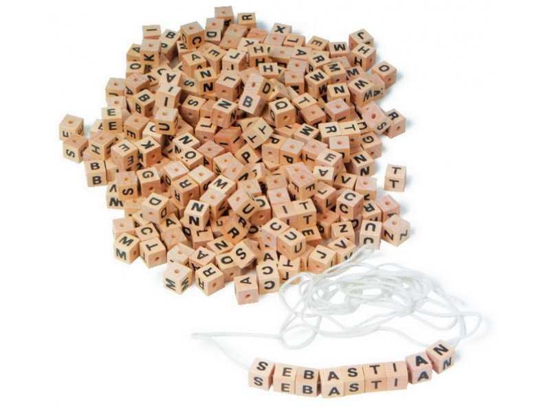Sada 300 ks dřevěných kostek s písmeny s navlékacím provázkem.Německá firma Legler zaměřená na výrobu kvalitních dřevěných hraček od roku 1996. Všechny dřevěné hračky značky small foot mají označení CE a jsou vyráběny dle evropské normy pro bezpečnost hraček EN 71. Použité barvy jsou speciálně vyvinuty pro dřevěné hračky a jsou odolné i proti slinám dětí. Dřevo, které se používá pro tyto hračky, většinou pochází z lesnických společností zapojených do zalesňování. To nabízí všem zákazníkům možnost přispět k zachování přirozeně rostoucích lesů. Dřevěné hračky small foot jsou zářivě barevné produkty, které jsou vyrobeny převážně z přírodních surovin - dřeva. Dětem dělají radost od útlého věku, rozvíjí jejich hmatové a smyslové dovednosti. Cílem značky small foot je podporovat duševní a fyzický vývoj dětí.