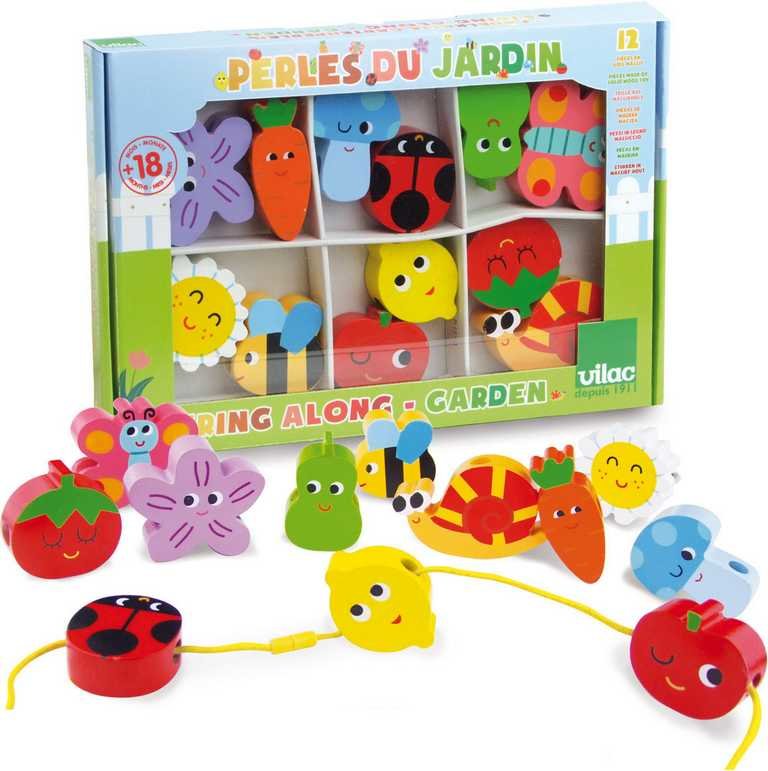 Velká provlékačka s tematikou zahrady, speciálně narvžena pro děti 18 měsíců staré. Hra, která podporuje rozvoj jemné motoriky. Hračka vyrobena ze dřeva, 12 dílků k provlečení, šňůrka má bezpečnostní klipsnu. Hračky Vilac mají značku francouzské agentury ADEME, to znamená, že tyto dřevěné hračky jsou vyráběny ekologicky. Šetří životní prostředí, neznečišťují půdu, vodu a vzduch, neplýtvají energiemi. Již více než 100 let plní značka Vilac dětské sny. Společnost Vilac sídlí hluboko v srdci pohoří Jura, obklopena horami, jezery a lesy. Tato francouzská společnost vyrábí od roku 1911 dřevěné hračky v klasickém, starodávném stylu s moderními barvami a vzory. Hračky Vilac jsou jedinečné, nikdy nevyjdou z módy a dokáží okouzlit všechny generace. Vilac pomáhá utvářet dětskou představivost svými radostnými ilustracemi či dizajny a reinterpretací klasických hraček, které se jen tak neopotřebují. Děti dostávají na Vánoce a narozeniny spousty hraček, většina z nich je však nezaujme na dlouhou dobu, láska k hračce se nenaplní. Dřevěné hračky Vilac vzbuzují vášeň i o 50 let později, když jako dospělí náhodou najdete v podkroví hračky, které jste jako děti milovali. Vilac již 100 let propojuje děti s hračkami, které si oblíbí a váží si jich. A proč je děti tak milují? To zůstává tajemstvím firmy Vilac.