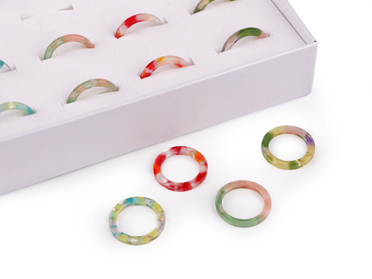 Sada plastových prstenů v krabičce - 12 ks - 2 mix multikolor