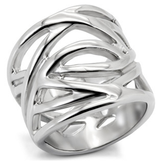 Propletený dámský ocelový prsten. Šíře prstenu je 13-19 mm