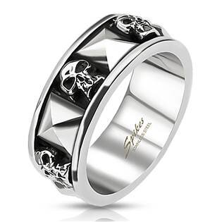 OPR0135-66 Ocelový prsten s lebkami