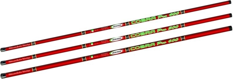 Série teleskopických bičů COBRA PRO je určená jak pro profesionální zavodní rybolov tak i pro amatérský rybolov. Pruty jsou vyrobeny z vysoce kvalitního karbonu o velké síle za použití nízké hmotnosti. Tyto pruty jsou ideální pro lov na řekách a jezerech a jejich doporučená akce je 10-40gr.