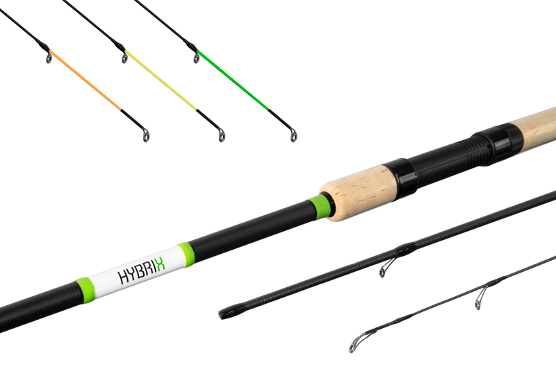Hybridní prut HYBRIX využijete při lovu na plavanou (match) nebo při feederovaní. Nemusíte se rozhodovat, zda si k vodě vzít dva rozdílné pruty na dvě různé techniky. S tímto příjemným "křížencem" se během pár minut dokážete přizpůsobit podmínkám a užít si lov bez pocitu, že právě s prutem, který jste si zapomněli doma, by to dnes šlo lépe. HYBRIX se dodává se dvěma vrchními díly. Matchový díl má vrhací zátěž 30g a feederový zase 60g. S těmito univerzálními gramážemi si klidně vystačíte. Zdolávací i nahazovací křivka prutu při obou dílech je maximálně příjemná. Matchová kombinace se ze začátku zdá tužší, avšak již po prvním nahození a zdolání zjistíte, že prut má krásnou parabolickou akci. Feederový prut naopak pracuje zejména v jeho horní polovině, celkově má ??tento prut s feederovým dílem poloparabolickou až parabolickou akci. Černý, matný 24T blank s bílou částí a zelenými detaily dělá z tohoto prutu moderního společníka každého milovníka jemnějšího lovu. Díky barevným detailům se HYBRIX neztratí a okamžitě upoutá pozornost. Rukojeť je dělená, vyhotovena z kombinace korku a černé EVA pěny. Ve spodní části plné rukojeti má EVA pěna příjemný zúžený úchop. S prutem jsou dodávány 3 feederové špičky: U-Light, Light a Medium.